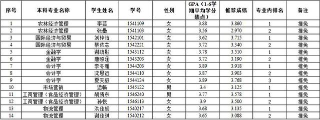 根据《bet36365路检测中心2019年推荐优秀应届本科毕业生免试攻读硕士学位研究生工作实施办法》的意见和《bet36365路检测中心2019年推荐优秀应届本科毕业生免试攻读硕士学位研究生工作实施办法》规定,对2015级32位申请人进行综合排名后,最终确定以下14人具备免试攻读硕士研究生资格,名单如下: