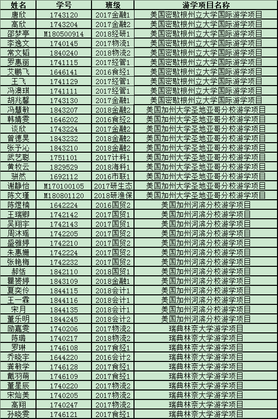 经报名、筛选,现公示bet36365路检测中心2019年暑期游学项目学生名单如下,如有问题,请反馈。