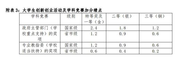 附表3:大学生创新创业活动及学科竞赛加分绩点