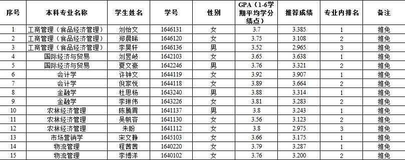 根据bet36365路检测中心《2020年推荐优秀应届本科毕业生免试攻读硕士学位研究生工作实施办法》和《bet36365路检测中心2020年推荐优秀应届本科毕业生免试攻读硕士学位研究生工作实施细则》规定,对2016级29位申请人进行综合排名后,最终确定以下15人具备免试攻读硕士研究生资格,名单如下: