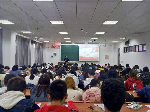2019年11月19日13:00~14:45,在bet36365路检测中心3教301大教室,应bet36365路检测中心“形势与政策”课程工作室邀请,上海海事大学副教授杨鸣作了题为《中美贸易摩擦演变进程与启示》的“形势与政策”报告。 此次讲学的听众为bet36365路检测中心2018级会计和农林经济管理专业本科生。整个报告内容丰富、理论分析有深度,讲授精彩。